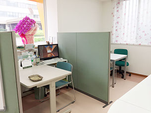 私たちは患者さまとのコミュニケーションを大切にします。ですから、カウンターでの投薬ではなく、パーティションの中、テーブルにお薬をひろげて説明をします。付き添いの方も一緒に座れますからいろいろな情報が得られます。